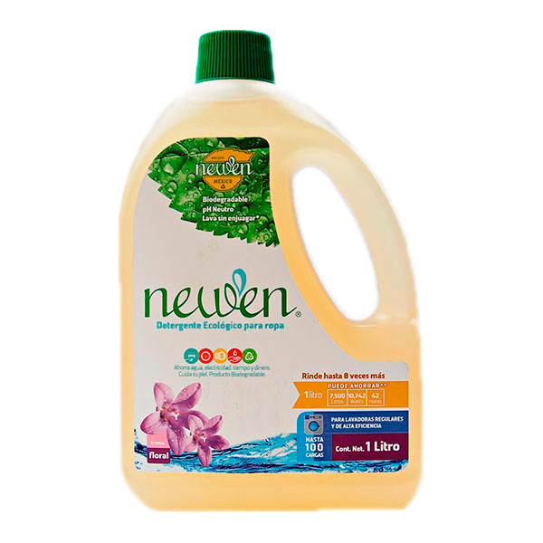 La fórmula avanzada de Newen permite lavar y evitar el enjuague posterior de la ropa, desprende la suciedad y deja las prendas limpias, suaves, perfumadas y libres de residuos. Por su efecto libre enjuague ahorra agua, electricidad, tiempo y dinero mientras proteges al planeta.