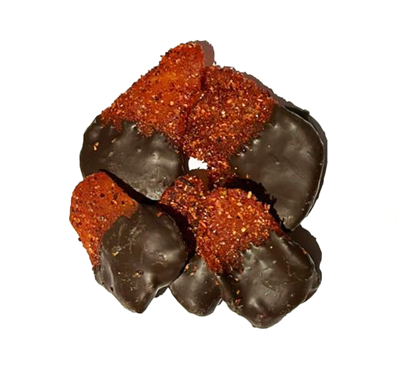 Mango natural enchilado bañado con chocolate. Un combinación entre salada y dulce que no podrás dejar de probar.