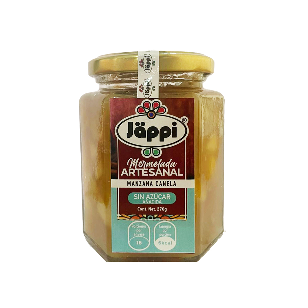 Mermelada natural de manzana y canela sin azúcar añadida ni saborizantes artificiales y con trozos de fruta. Hecha de forma artesanal con fruta fresca de campo.