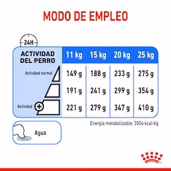 Muchos perros padecen sobrepeso y sufren las consecuencias que eso tiene para sus articulaciones. Ayuda a tu perro a mantenerse esbelto y ágil gracias a los nutrientes de alta calidad diseñados para mantener un peso corporal ideal. Light Weight Care Medium de ROYAL CANIN® es un alimento adecuado para perros de entre 11 y 25 kg y ayuda a que tu perro no pese ni un gramo de más. Esta fórmula exclusiva contiene ácidos grasos omega 3 (que incluye EPA y DHA) para favorecer la salud de sus articulaciones. Light Weight Care Medium de ROYAL CANIN® ha sido específicamente elaborado con mucha menos grasa para ayudar a tu perro a mantener su peso ideal. Para Royal Canin, las proteínas son muy importantes. Esta fórmula tiene un alto contenido de proteínas digestibles para reducir la ingesta calórica y de grasas y que tu mascota mantenga la masa muscular. Además, la combinación óptima de fibras solubles e insolubles hace que se sienta saciado y garantizan un tránsito regular y sano, para que tenga mejores digestiones. Nuestro programa nutricional Light Weight Care está disponible en dos formatos: una crujiente croqueta y un apetecible paté en sobres. Dos opciones nutricionales completas y se complementan a la perfección. ¿Por qué no probar el paté combinado con el alimento seco? Pero no solo lo decimos nosotros, ya que ha sido científicamente testado en las instalaciones de Royal Canin que Light Weight Care Medium de ROYAL CANIN® contiene un 21 % menos de grasa que un alimento habitual para perros adultos. Esto significa que el éxito de Light Weight Care Medium de ROYAL CANIN® está demostrado.